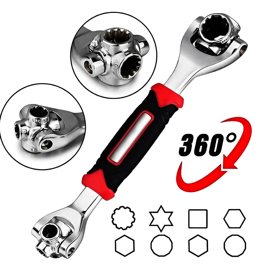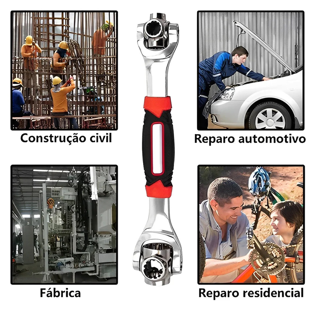 Aumente sua produtividade e reduza o esforço nas tarefas com a Chave Multifuncional 48 em 1 Universal 360°, a ferramenta que substitui dezenas de chaves em um único design inteligente!