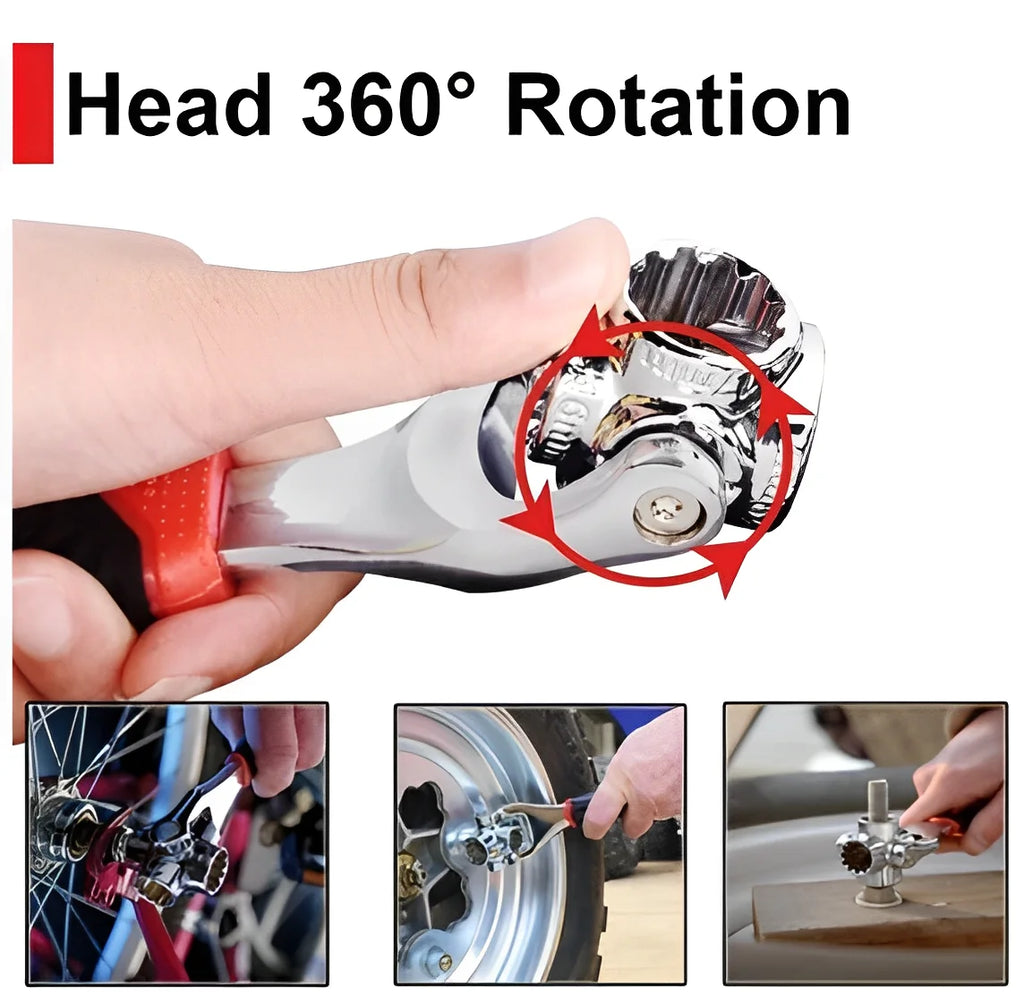 Com rotação de 360°, cabo antiderrapante e cabeças adaptáveis a múltiplos formatos, esta chave ajusta-se automaticamente a parafusos e porcas de diferentes tamanhos, garantindo agilidade e conforto no trabalho.